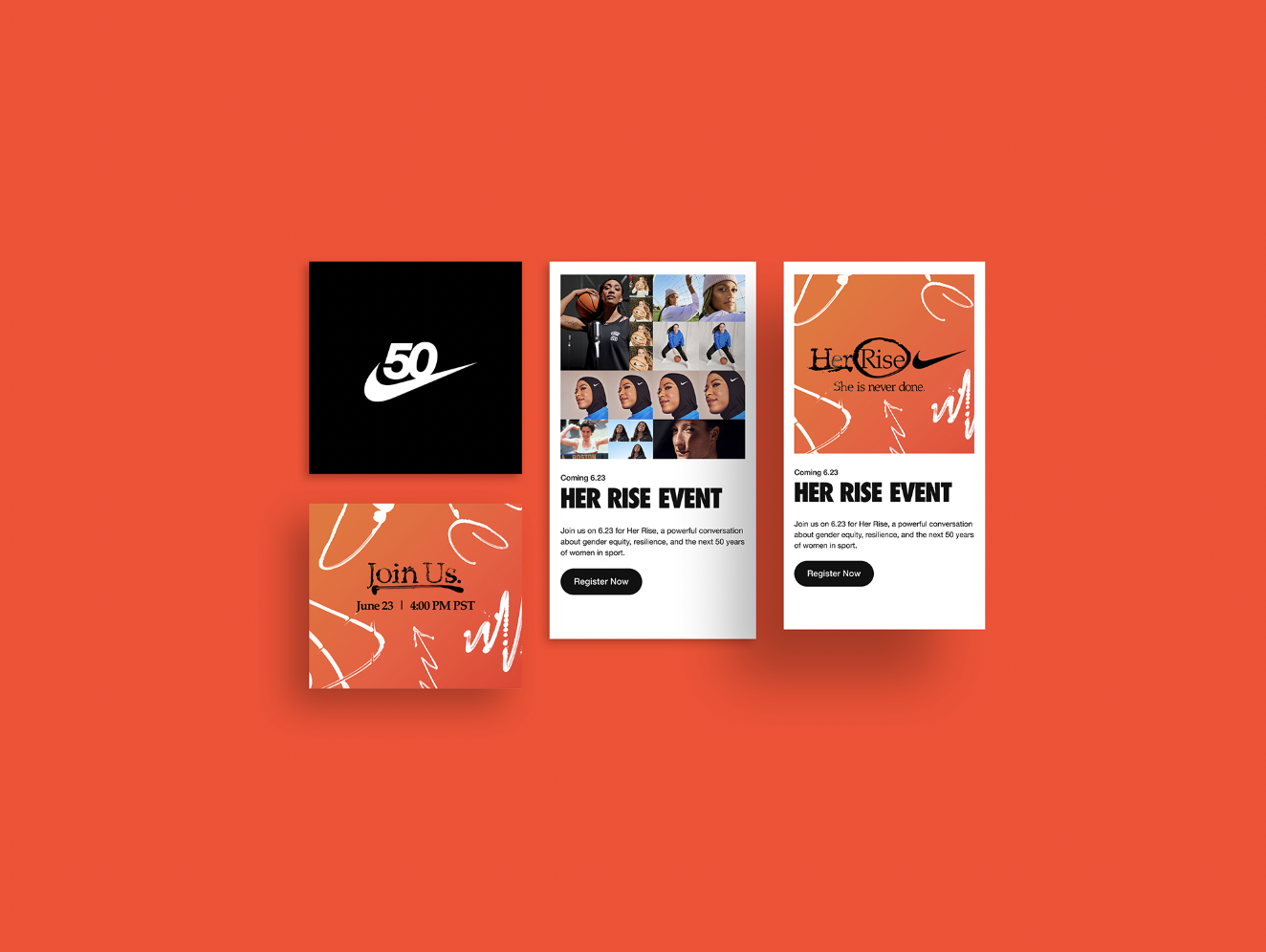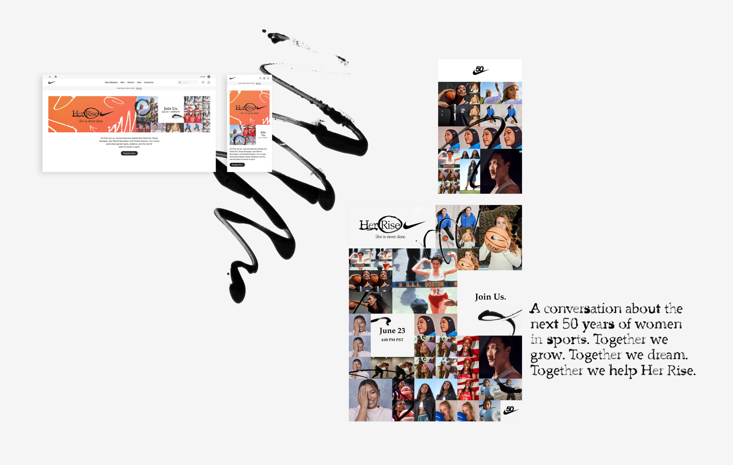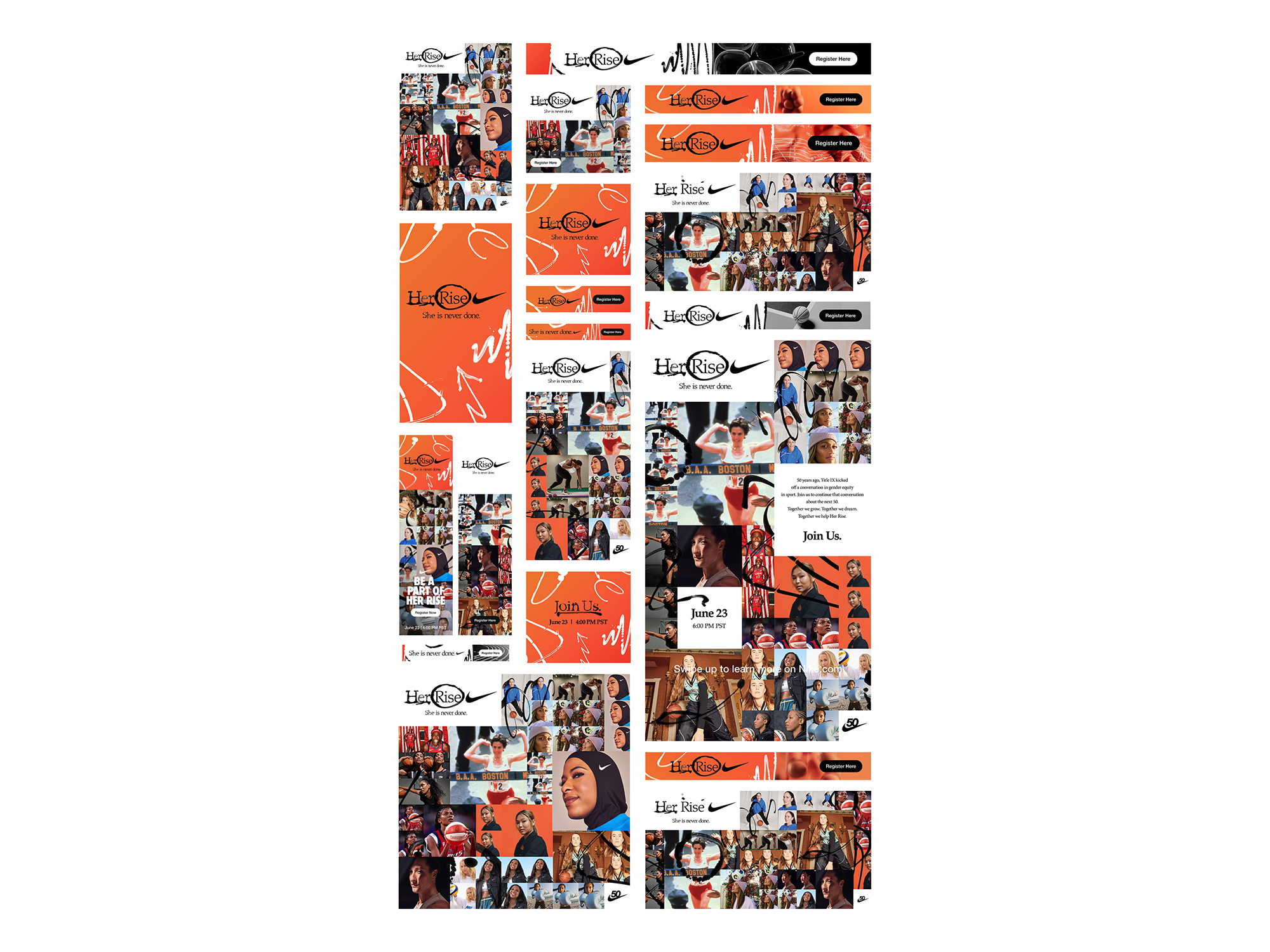We are bold innovators, weaving together moments of strength, grace, and individuality. A mosaic of iconic imagery and contemporary portraits of diverse athletes—a tribute to every woman who has redefined sport, one breath, one sweat, one breakthrough at a time. The narrative pulses with energy—anchored by expressive, hand-drawn marks that bridge Nike’s legacy and its future. Scalable, cross-platform design systems powered the campaign across Google, DV360, Snapchat, TikTok, Pinterest, and Spotify. The outcome: a unified brand story that celebrated 50 years of athletic excellence and drove record engagement across digital channels.
