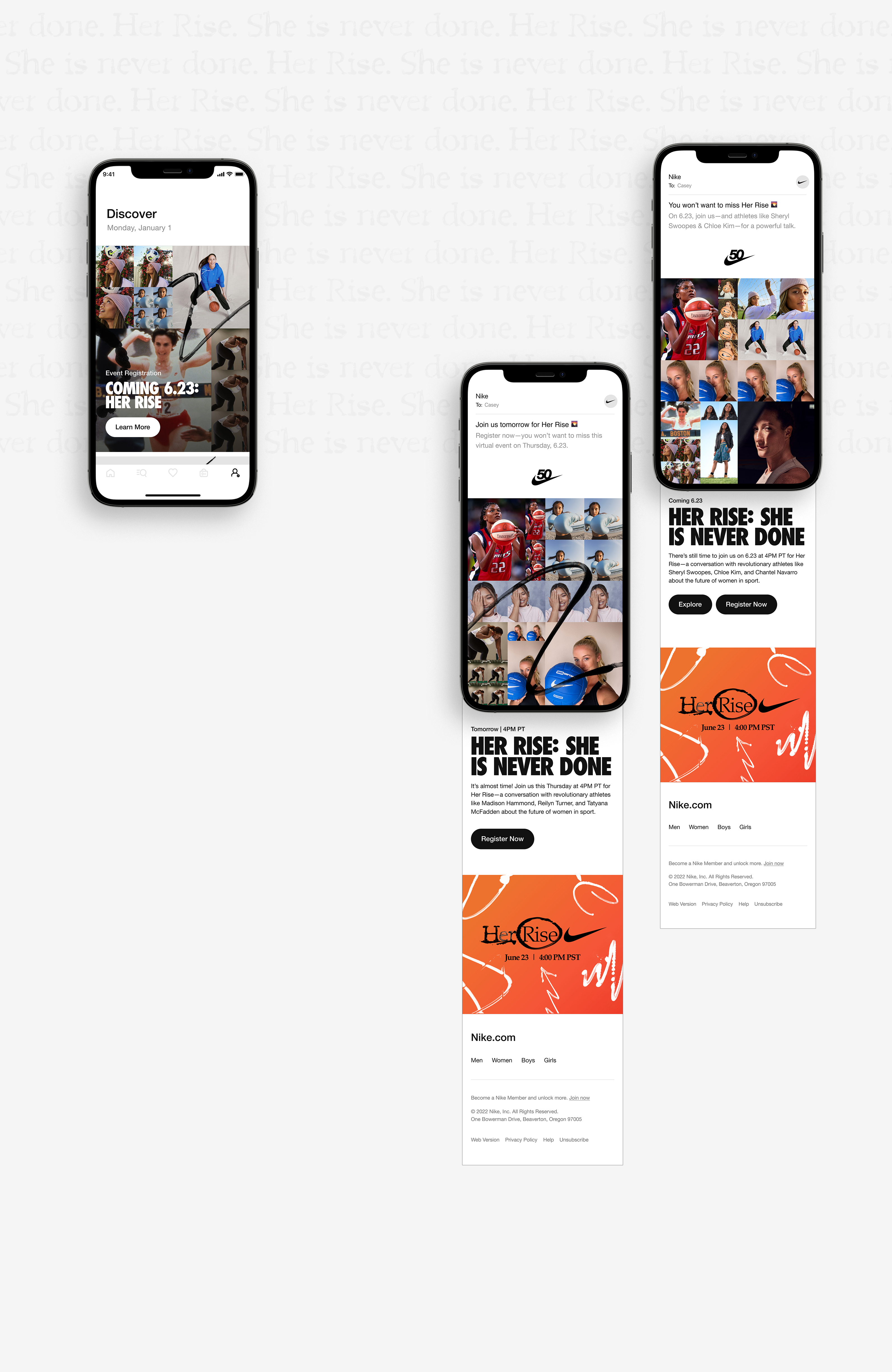 Nike’s ‘Her Rise’ initiative commemorates the 50th anniversary of Title IX through compelling storytelling, inspiring live events, and a powerful celebration of women’s progress in sports, education, and beyond. Located in Downtown Los Angeles, this community event focused on “Her” – bringing champion athletes together with the next generation of female athletes.