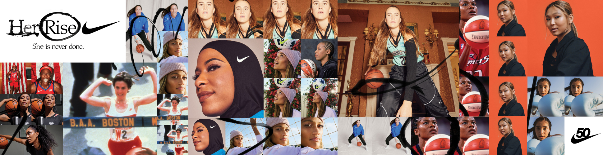 For every year of Nike’s life, the brand spotlights a defining moment that helped shape the world. These 50 works of progress range from innovations, events, athletes and more, reflect Nike’s evolution while also offering a glimpse into its future direction.