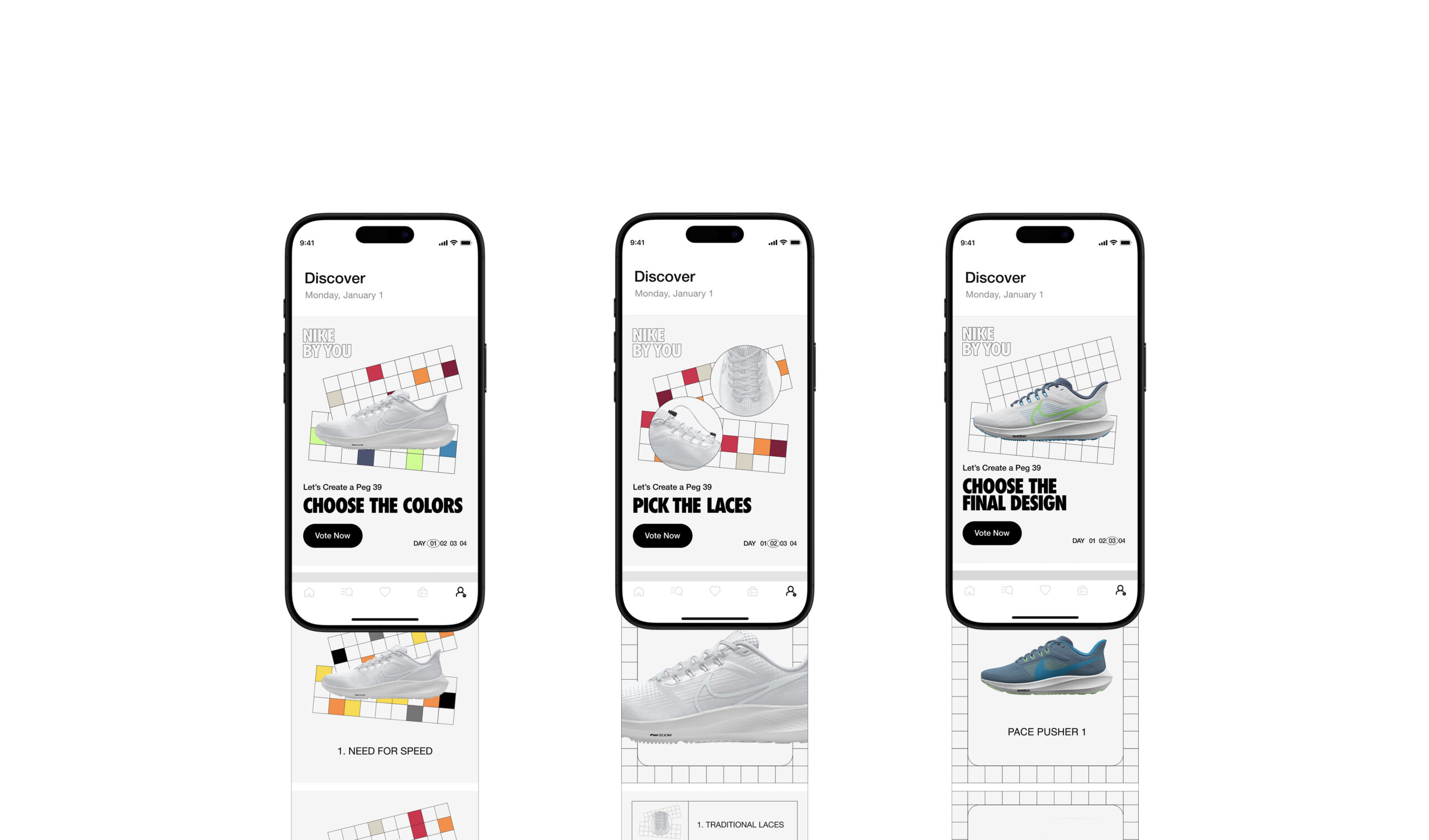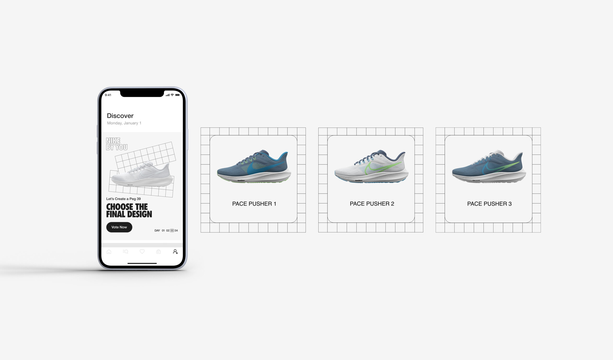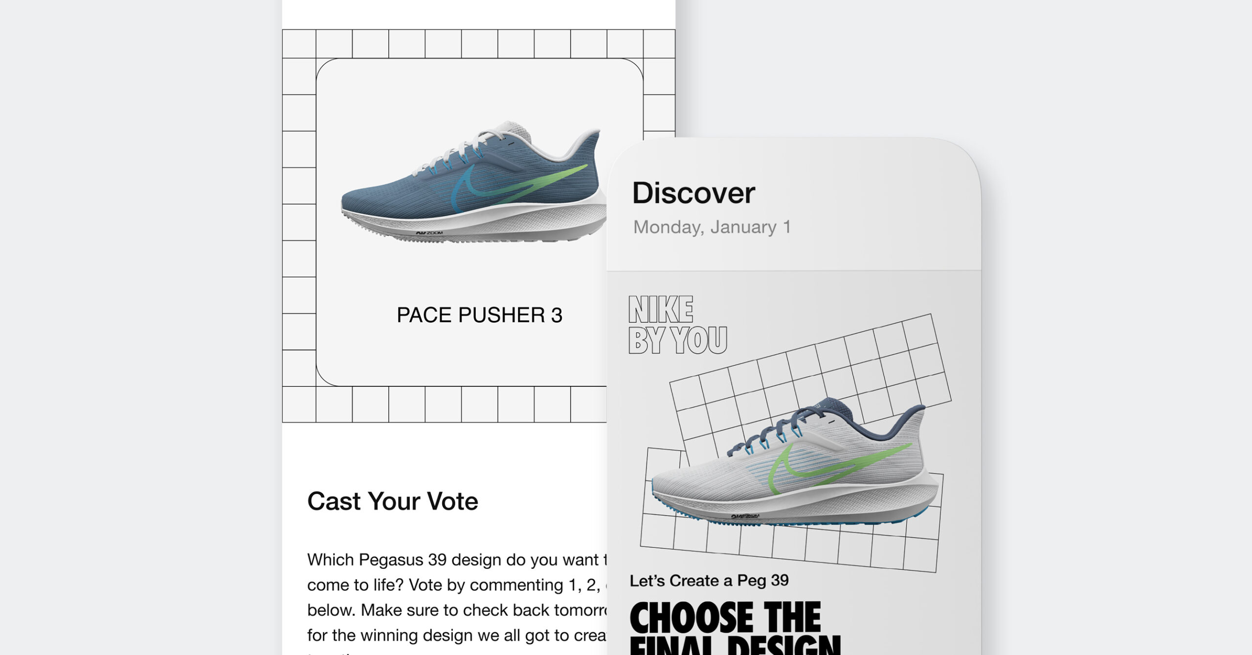 The first Design-A-Shoe was designed to celebrate the Nike App’s 4th Anniversary. This campaign is comprised of two ‘layers’—Nike and You. The design includes Nike-by-You elements that reinvigorates the brands energy and visually embodies the collaborative spirit. The planning was strategic accounting for all design options ahead of time that had to be vote-ready and delivered immediately.